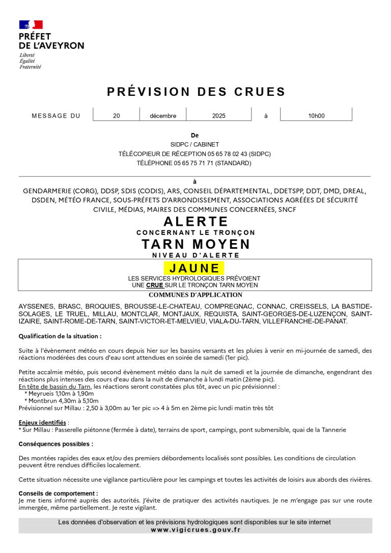 ALERTE crue niveau JAUNE jusqu’à lundi.